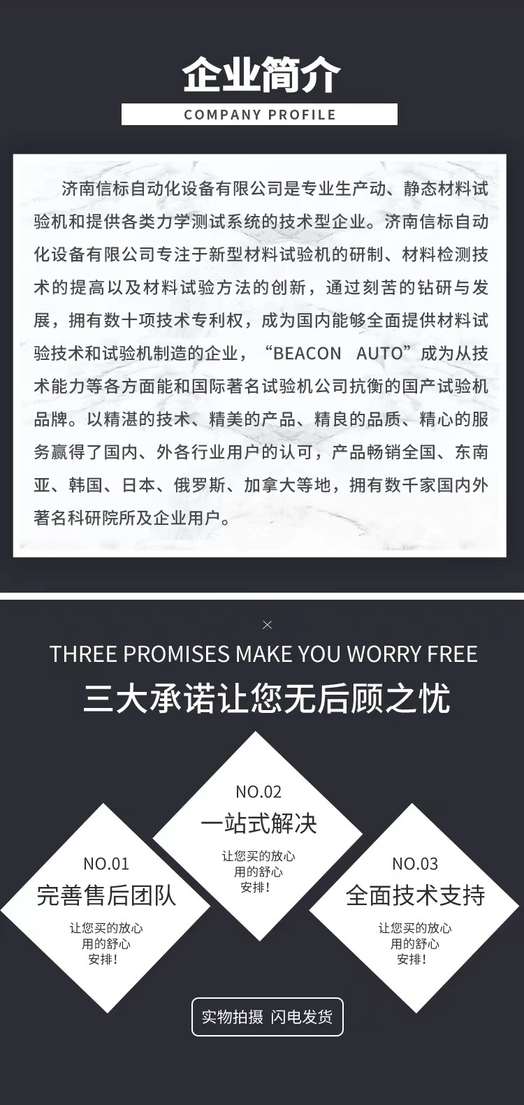 濟(jì)南信標(biāo)自動化設(shè)備有限公司主要生產(chǎn):動靜態(tài)萬能疲勞試驗(yàn)機(jī),接骨板彎曲試驗(yàn)機(jī),縫合線拉伸疲勞試驗(yàn)機(jī),髖膝關(guān)節(jié)磨損試驗(yàn)機(jī),電子萬能試驗(yàn)機(jī)、液壓萬能試驗(yàn)機(jī)、巖石三軸、四軸,電液拉力試驗(yàn)機(jī),材料試驗(yàn)機(jī),高低溫蠕變,高低頻疲勞,拉伸、扭轉(zhuǎn)、杯突等二十多個系列兩千多個的品種。