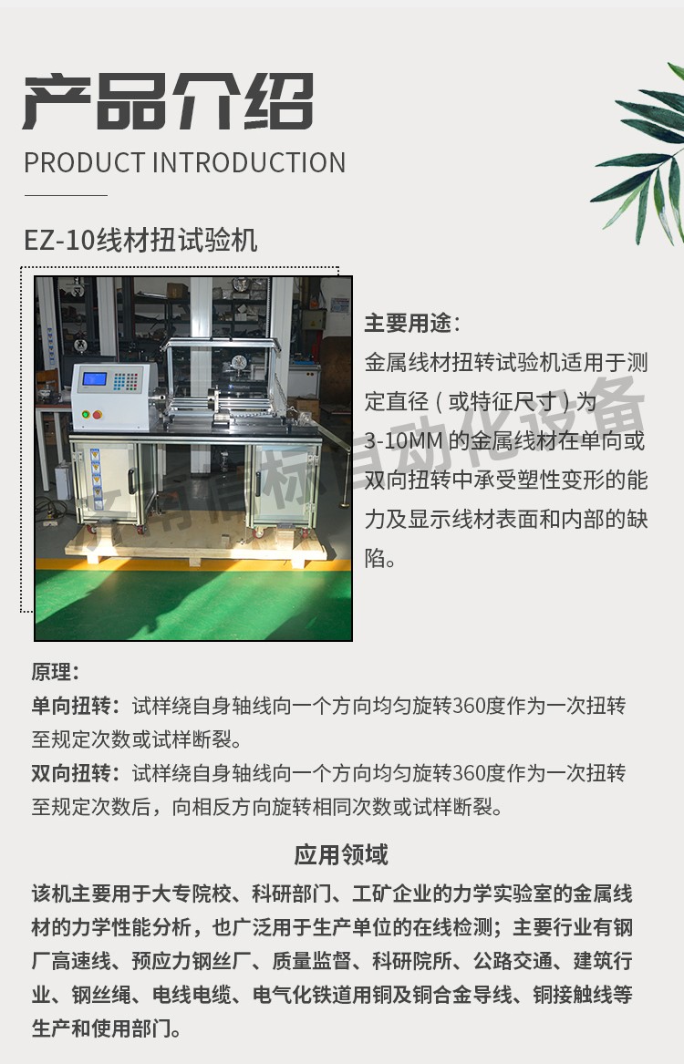 金屬線材扭轉試驗機適用于測定直徑(或特征尺寸)為3-10mm 的金屬線材在單向或雙向扭轉中承受塑性變形的能力及顯示線材表面和內部的缺陷。 二、原理: 單向扭轉:試樣繞自身軸線向一個方向均勻旋轉360度作為一次扭轉至規(guī)定次數或試樣斷裂。 雙向扭轉:試樣繞自身軸線向一個方向均勻旋轉360度作為一次扭轉至規(guī)定次數后,向相反方向旋轉相同次數或試樣斷裂。 金屬線材扭轉試驗機適用標準: 金屬線材扭轉試驗機適用于中華人民共和國標準GB/T 239.1-2012《金屬材料 線材 第一部分 單向扭轉試驗方法》、GB/T 239.2-2012《金屬材料 線材 第二部分 雙向扭轉試驗方法》,也適用于國際標準ISO 7800:2003《金屬線材單向扭轉試驗方法》和ISO 9649:1990《金屬線材雙向扭轉試驗方法》。 金屬線材扭轉試驗機應用領域: 該機主要用于大專院校、科研部門、工礦企業(yè)的力學實驗室的金屬線材的力學性能分析,也廣泛用于生產單位的在線檢測;主要行業(yè)有鋼廠高速線、預應力鋼絲廠、質量監(jiān)督、科研院所、公路交通、建筑行業(yè)、鋼絲繩、電線電纜、電氣化鐵道用銅及銅合金導線、銅接觸線等生產和使用部門。更多金屬線材扭轉試驗機資料請聯(lián)系我們濟南信標自動化設備有限公司。專業(yè)生產液壓萬能試驗機,疲勞試驗機,扭轉試驗機,高溫蠕變試驗機,彈簧試驗機,彎曲試驗機,沖擊試驗機,彎曲強度試驗機,抗拉強度試驗機等。