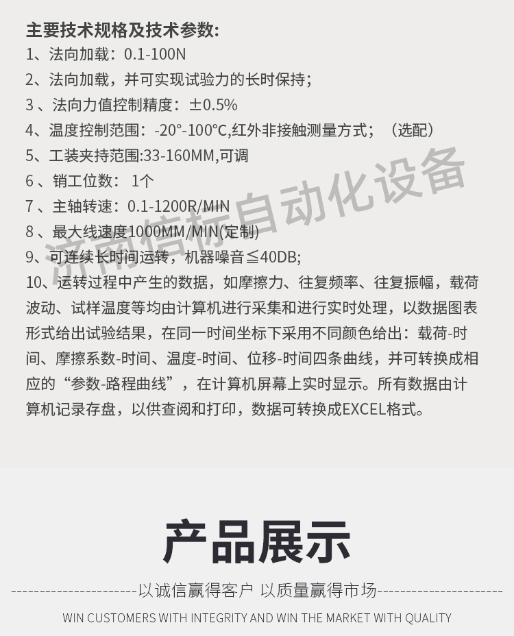 濟南信標自動化設(shè)備有限公司主要生產(chǎn):動靜態(tài)萬能疲勞試驗機,接骨板彎曲試驗機,縫合線拉伸疲勞試驗機,髖膝關(guān)節(jié)磨損試驗機,電子萬能試驗機、液壓萬能試驗機、巖石三軸、四軸,電液拉力試驗機,材料試驗機,高低溫蠕變,高低頻疲勞,拉伸、扭轉(zhuǎn)、杯突等二十多個系列兩千多個的品種。