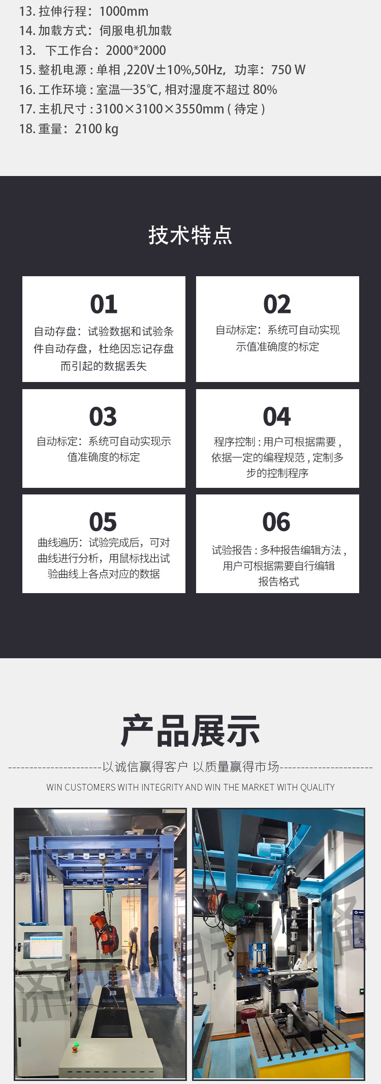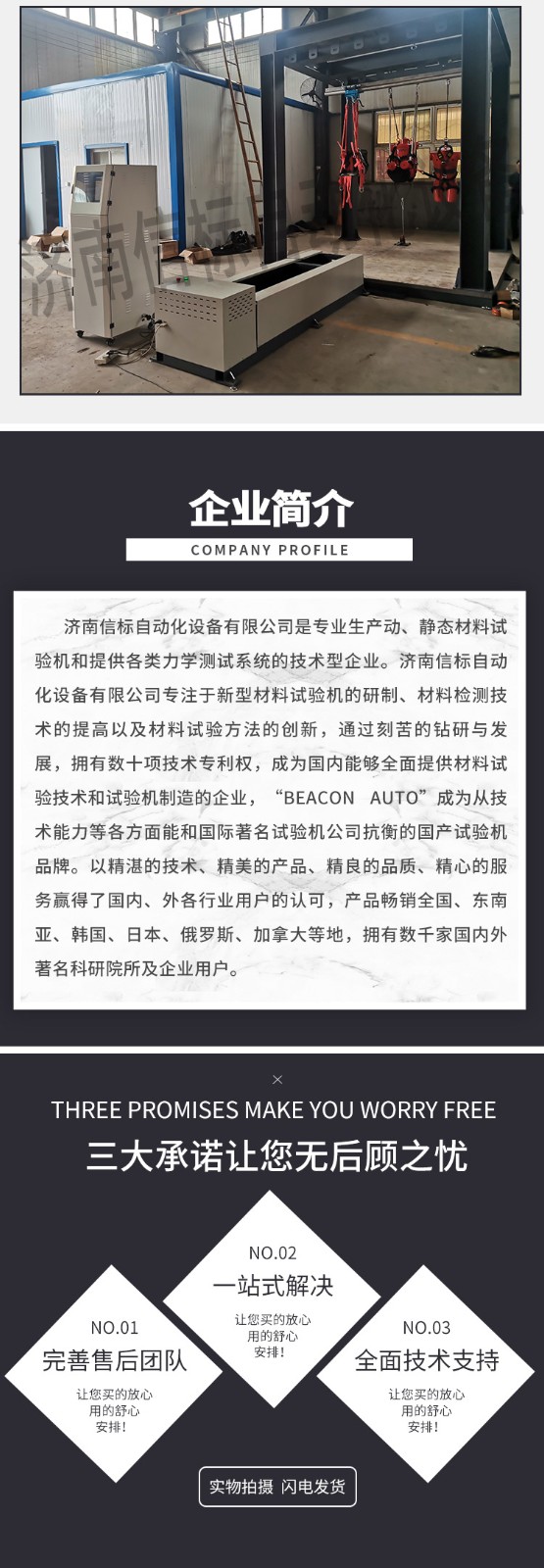 濟南信標自動化設(shè)備有限公司主要生產(chǎn):動靜態(tài)萬能疲勞試驗機,接骨板彎曲試驗機,縫合線拉伸疲勞試驗機,髖膝關(guān)節(jié)磨損試驗機,電子萬能試驗機、液壓萬能試驗機、巖石三軸、四軸,電液拉力試驗機,材料試驗機,高低溫蠕變,高低頻疲勞,拉伸、扭轉(zhuǎn)、杯突等二十多個系列兩千多個的品種。