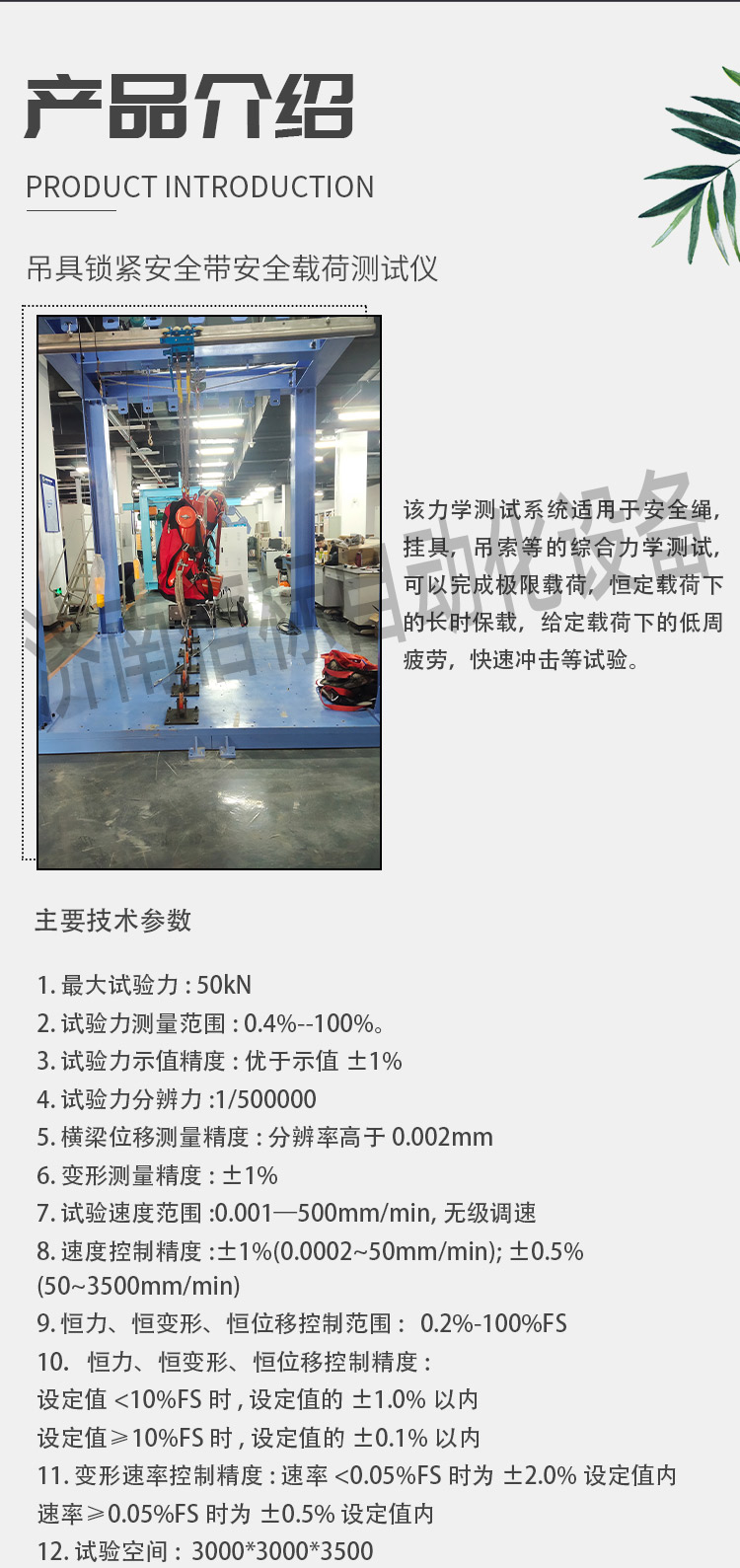 吊具鎖緊安全帶安全載荷測試儀 安全吊具力學性能測試系統(tǒng)