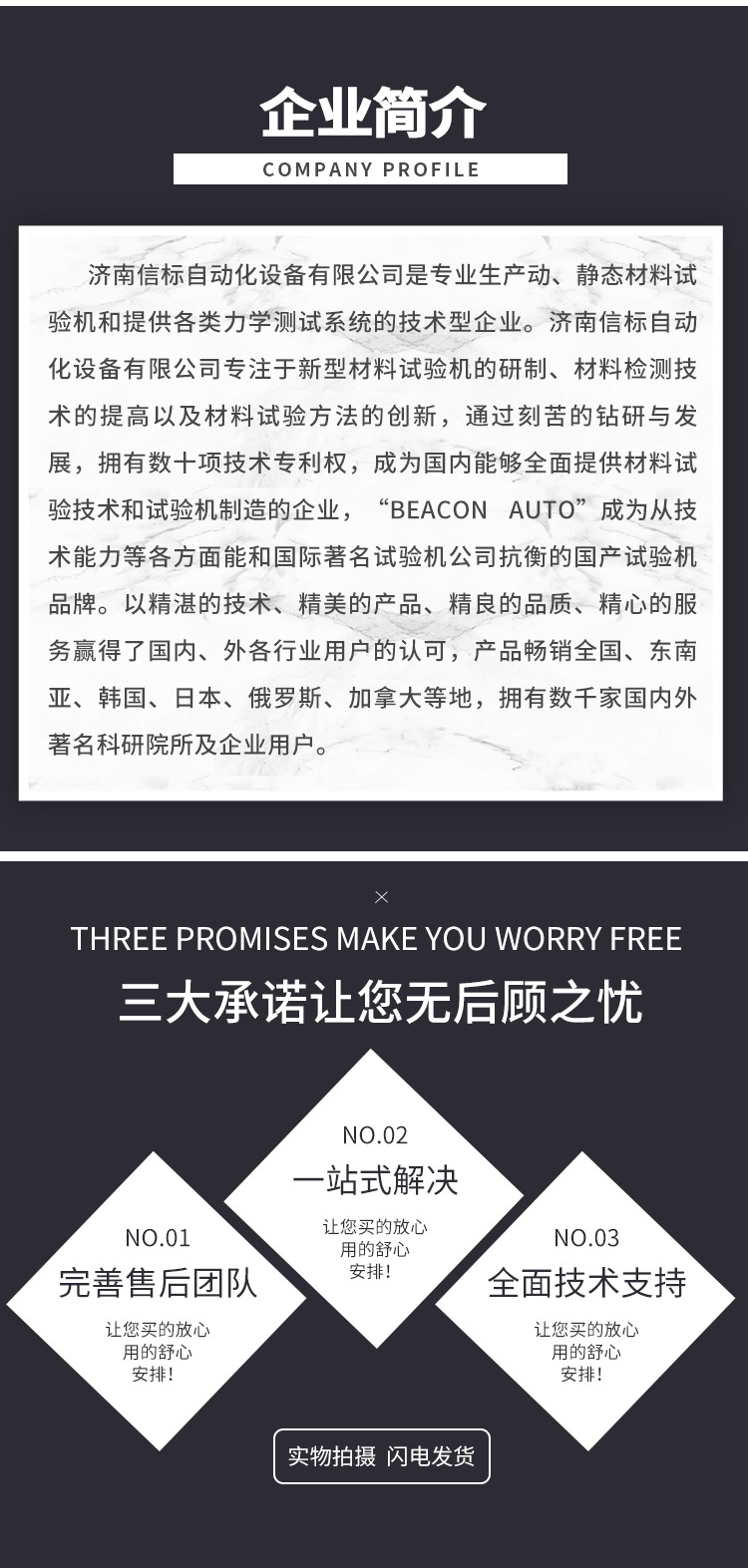 濟(jì)南信標(biāo)自動化設(shè)備有限公司主要生產(chǎn):動靜態(tài)萬能疲勞試驗機,接骨板彎曲試驗機,縫合線拉伸疲勞試驗機,髖膝關(guān)節(jié)磨損試驗機,電子萬能試驗機、液壓萬能試驗機、巖石三軸、四軸,電液拉力試驗機,材料試驗機,高低溫蠕變,高低頻疲勞,拉伸、扭轉(zhuǎn)、杯突等二十多個系列兩千多個的品種。