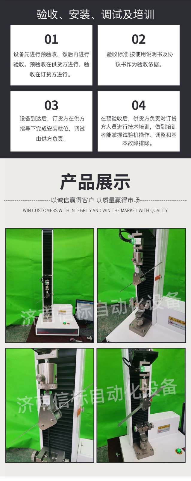 高強(qiáng)度膠黏劑膠帶浮棍法90度180度剝離強(qiáng)度試驗(yàn)機(jī)主要功能及特點(diǎn): 1、主機(jī): 1.1調(diào)速系統(tǒng)采用伺服電機(jī)和自主研發(fā)減速系統(tǒng),性能穩(wěn)定可靠,具有過(guò)流、過(guò)壓、過(guò)載等保護(hù)裝置。調(diào)速范圍可達(dá)0.05~500mm/min。 1.2傳動(dòng)部分采用圓弧同步齒形帶,精密絲杠副傳動(dòng),傳動(dòng)平穩(wěn),噪音低,傳動(dòng)效率高。 1.3萬(wàn)向節(jié)采用十字插銷結(jié)構(gòu),而且具有擺角限制功能,一方面便于試樣夾持,保證試驗(yàn)同心度,另一方面很好的消除了不規(guī)則試樣對(duì)傳感器的影響。 2、控制系統(tǒng)、操作軟件及數(shù)據(jù)處理系統(tǒng) 2.1計(jì)算機(jī)控制系統(tǒng),具有集成度高、性能穩(wěn)定、調(diào)整方便等優(yōu)點(diǎn)??梢詫?duì)實(shí)驗(yàn)數(shù)據(jù)進(jìn)行實(shí)時(shí)采集,對(duì)實(shí)驗(yàn)特性曲線實(shí)現(xiàn)實(shí)時(shí)動(dòng)態(tài)顯示,試驗(yàn)數(shù)據(jù)文件能以Access常用數(shù)據(jù)庫(kù)或SQLserve大型數(shù)據(jù)庫(kù)的方式保存,方便實(shí)現(xiàn)客戶的資源共享及網(wǎng)絡(luò)管理,以及用戶的再分析。對(duì)于用戶自定義的各種word2000報(bào)表,該軟件可輕松實(shí)現(xiàn)訪問(wèn),解決了不同用戶或同一用戶在不同時(shí)期對(duì)試驗(yàn)報(bào)表有不同需要的難題。該軟件可處理試驗(yàn)力、位移、時(shí)間、變形的原始數(shù)據(jù)及由此派生的曲線。