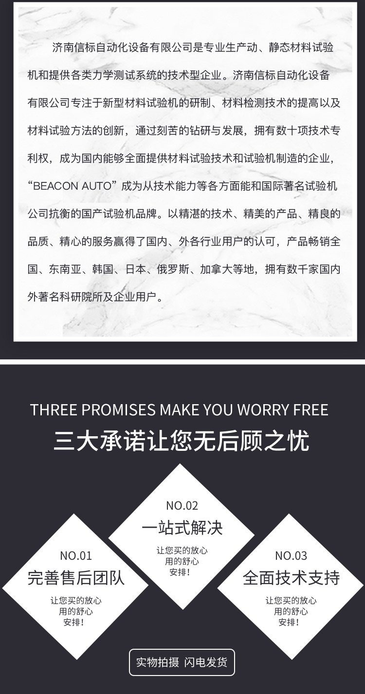 濟南信標自動化設備有限公司主要生產(chǎn):動靜態(tài)萬能疲勞試驗機,接骨板彎曲試驗機,縫合線拉伸疲勞試驗機,髖膝關(guān)節(jié)磨損試驗機,電子萬能試驗機、液壓萬能試驗機、巖石三軸、四軸,電液拉力試驗機,材料試驗機,高低溫蠕變,高低頻疲勞,拉伸、扭轉(zhuǎn)、杯突等二十多個系列兩千多個的品種。