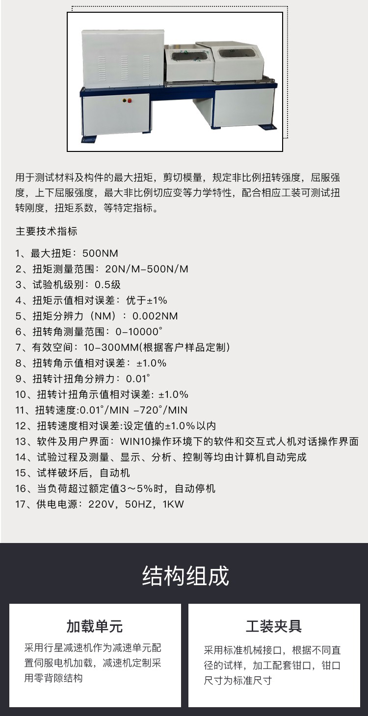 ?基于Win7/10操作平臺,軟件操作簡單、功能強大,人機對話式結構。操作簡單易學 ?軟件采用模塊化設計,不同的試驗類型創(chuàng)建,試驗控制以及數(shù)據(jù)分析都有獨立的模塊,與主程序分離??梢赃m應多種試驗類型的試驗控制和數(shù)據(jù)處理 ?試驗數(shù)據(jù)可由用戶自行添加,個數(shù)不限,采用模板方式新建試驗記錄,方便快捷 ?自動完成試驗過程、判斷破型,自動記錄保存試驗數(shù)據(jù)。所有試驗數(shù)據(jù)以國際通用的XML格式保存 ?高效的試驗數(shù)據(jù)管理功能,能按多種方式實現(xiàn)試驗數(shù)據(jù)的快速查詢、加載與刪除 ?試驗結束系統(tǒng)自動分析、統(tǒng)計試驗結果,分析方式可由用戶自行設定 ?靈活的報表編輯功能,為用戶提供了面向圖形排版的專用報表編輯工具,簡單易學,能方便的打印試驗曲線及相關圖片、文字 ?用戶可根據(jù)需要對試驗數(shù)據(jù)進行刪除 ?用戶可以根據(jù)需要改變分析方法,數(shù)據(jù)可以根據(jù)本身需要自行修改修約方式 ?專用的數(shù)據(jù)庫管理庫模塊 ?分四檔數(shù)碼顯示試驗力值,精度為每檔量程20%開始示值的±1% ?分四檔數(shù)碼顯示變形,精度為每檔量程20%開始±0.5% ?同時記錄扭矩-時間,扭角-時間、扭矩-扭角、扭矩-轉角試驗曲線,可隨時切換觀察,任意放大縮小,水平或垂直移動,實時高速采樣 ?采用人機交互方式分析計算測試材料的機械性能指標,試驗結束時系統(tǒng)會自動計算最大扭矩、抗扭強度、上下屈服扭矩、規(guī)定非比例扭矩、切變模量等,在自動分析的基礎上,還可以人工干預修正分析結果,提高分析的準確性