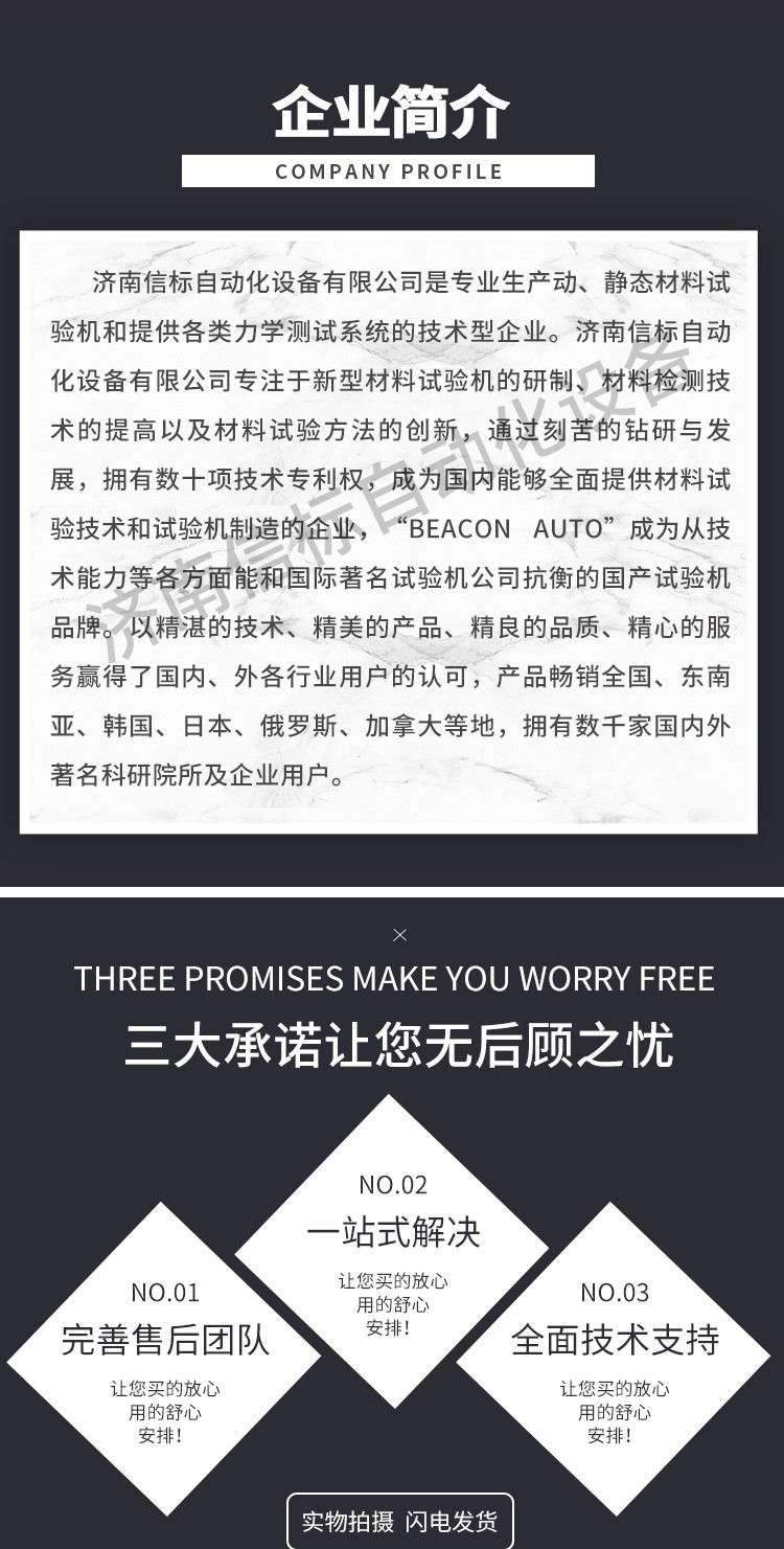 濟(jì)南信標(biāo)自動(dòng)化設(shè)備有限公司主要生產(chǎn):動(dòng)靜態(tài)萬能疲勞試驗(yàn)機(jī),接骨板彎曲試驗(yàn)機(jī),縫合線拉伸疲勞試驗(yàn)機(jī),髖膝關(guān)節(jié)磨損試驗(yàn)機(jī),電子萬能試驗(yàn)機(jī)、液壓萬能試驗(yàn)機(jī)、巖石三軸、四軸,電液拉力試驗(yàn)機(jī),材料試驗(yàn)機(jī),高低溫蠕變,高低頻疲勞,拉伸、扭轉(zhuǎn)、杯突等二十多個(gè)系列兩千多個(gè)的品種。