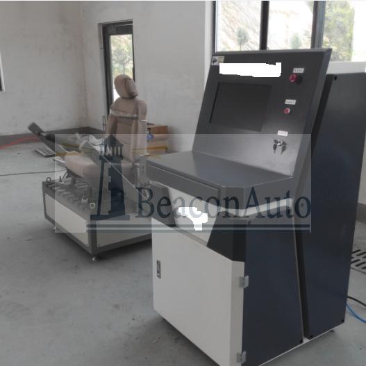 汽車座椅調角器耐久疲勞試驗臺 1、概述 汽車座椅調角器耐久疲勞試驗臺設備用于測試座椅調角器工作耐久性,調角器沖擊耐久性,回位力矩。 本試驗臺結構簡單,性能穩(wěn)定,操作方便,安全可靠,采用自動加力、自動計時,多項目耐久測試,到達設定試驗時間后自動停止測試,自動記錄試驗數據,并繪制曲線等功能。 特別聲明: l 本簡介概述不能作為向本公司提出任何要求的依據 l 本公司保留對本簡介概述的解釋權 l 本公司保留在滿足客戶要求的基礎上變更設計的權利 l 該設備的制造嚴格按照國家標準進行。本方案的制訂僅代表我公司能制造該設備。為保證客戶方和我公司的的信息保密,雙方需要妥善保存及處理好相對應的技術資料或提供的試驗標準。在未經雙方同意時,所涉及的技術資料及試驗標準嚴防外泄。 2、依據標準 ? QC/T 844-2011 《乘用車座椅用調角器技術條件》 ? JT/T 460-2005 《客車座椅靠背調角器技術條件》 3、 型號說明 TJNJ-02-------------汽車座椅調角器耐久性能試驗臺 4、 試驗項目 座椅調角器工作耐久性 5、汽車座椅調角器耐久疲勞試驗臺主要參數 4.1拉壓力傳感器:250N,精度0.2% 4.2擺臂轉動角速度:0.87-3.49rad(10)/s; 4.3轉動角度:±90°(以垂直地面為0°);調角器解鎖行程:0-100mm ; 4.4轉動頻率:0-10次/分鐘 ;帶鎖0-5次/分鐘(中間開鎖位置越多越慢); 4.5工作電壓功率:380V,2.5Kw,恒壓干燥氣源輸出≤0.8MPa 4.6可對試驗過程中的力值及行程等參數進行實時監(jiān)控及試驗過程中的數據保存,并可出據試驗報告 5、汽車座椅調角器耐久疲勞試驗臺性能特點 5.1本設備融合國家座椅相關標準內容,結合客戶企業(yè)相關標準進行增加改進。本試驗臺采用易裝夾式結構,采用框架結構及鈑金噴塑殼體,結構穩(wěn)定,適用于各種不同種類的座椅總成的手動調角器以及類似產品進行動作疲勞測試; 5.2擺動部分采用伺服電機搭配行星減速機作為動作執(zhí)行源,伺服電機的優(yōu)點是位置及角度控制較好,搭配減速機將擺動速度降低,將擺動扭矩升高; 5.3擺臂中心與座椅調角器中心不同心問題,圓周運動時對應線性容易造成卡滯,我們經過反復研討,確定運用雙光軸定位,雙滾珠軸承螺母導向,調心軸承組連接使調軸不同心時,對對應線性進行補償,達到圓周擺動效果; 5.4可進行自動回彈式座椅的疲勞試驗和非自動回彈式座椅的疲勞試驗,可對自動回彈式座椅是否回位進行反饋; 5.5執(zhí)手開啟機構,實現機械限位與光電限位配合模式,防止開鎖力過大對整體機構進行過沖性破壞; 5.6可對轉動實時扭矩進行監(jiān)控,對極限值進行采集并且記錄;