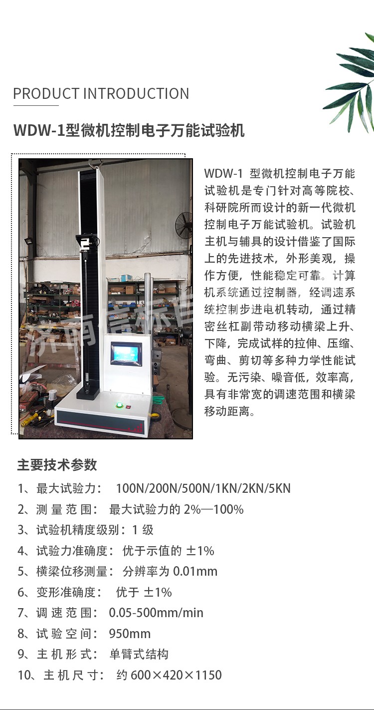 二、主要技術指標: 1、最大試驗力: 100N/200N/500N/1KN/2KN/5KN 2、測 量 范 圍: 最大試驗力的2%—100% 3、試驗機精度級別:1級 4、試驗力準確度: 優(yōu)于示值的±1% 5、橫梁位移測量: 分辨率為0.01mm 6、變形準確度: 優(yōu)于±1% 7、調(diào) 速 范 圍: 0.05-500mm/min 8、試 驗 空 間: 950mm 9、主 機 形 式: 單臂式結構 10、主 機 尺 寸: 約600×420×1150 11、重 量: 約90Kg 12、工 作 環(huán) 境: 室溫~45℃,濕度20%~80%