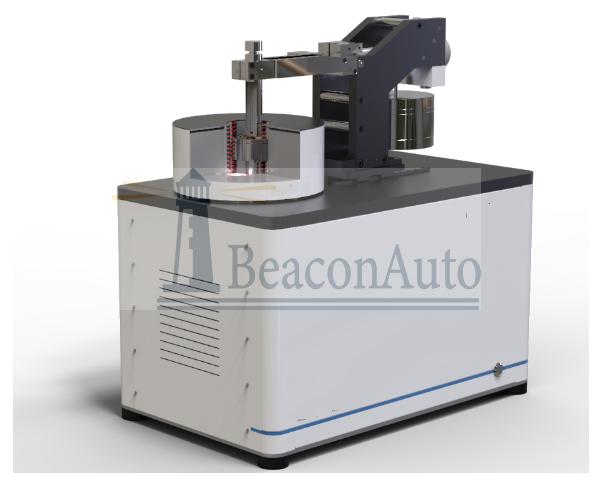 MPT20平面/銷盤摩擦磨損試驗機 關(guān)鍵詞:小型盤銷式摩擦試驗機,銷盤式摩擦磨損試驗機,金屬涂層銷盤式摩擦磨損試驗機,球盤摩擦機,銷盤式摩擦磨損試驗機。 MPT20平面/銷盤摩擦磨損試驗機 概述 該試驗機主要用于測定滑軌及特定金屬在近似PV值下的摩擦性能。另外,該機還可在較高的線速度條件下,用來評定潤滑劑、金屬、塑料、涂層、橡膠、陶瓷等材料的摩擦磨損性能,摩擦副形式主要是點和面,面面接觸摩擦。 MPT20平面/銷盤摩擦磨損試驗機主要技術(shù)規(guī)格及技術(shù)參數(shù) 2.1法向加載:0.1-20N 2.2法向加載,并可實現(xiàn)試驗力的長時保持; 2.3 法向力值控制精度:±0.5% 2.4溫度控制范圍:-20°-100℃,紅外非接觸測量方式;(選配) 2.5工裝夾持范圍:33-160mm,可調(diào) 2.6 銷工位數(shù): 3個 2.7 主軸轉(zhuǎn)速:0.1-1200r/min 2.5可連續(xù)長時間運轉(zhuǎn),機器噪音≦40dB; 2.7運轉(zhuǎn)過程中產(chǎn)生的數(shù)據(jù),如摩擦力、往復(fù)頻率、往復(fù)振幅,載荷波動、試樣溫度等均由計算機進行采集和進行實時處理,以數(shù)據(jù)圖表形式給出試驗結(jié)果,在同一時間坐標(biāo)下采用不同顏色給出:載荷-時間、摩擦系數(shù)-時間、溫度-時間、位移-時間四條曲線,并可轉(zhuǎn)換成相應(yīng)的“參數(shù)-路程曲線”,在計算機屏幕上實時顯示。所有數(shù)據(jù)由計算機記錄存盤,以供查閱和打印,數(shù)據(jù)可轉(zhuǎn)換成Excel格式。 MPT20平面/銷盤摩擦磨損試驗機試驗機結(jié)構(gòu)原理 1. 主要技術(shù)要求及滿足情況:(水平運動總成選配) 為滿足2的各項技術(shù)要求,本產(chǎn)品擬采用以下方案 3.1該試驗機由法向加載系統(tǒng)、水平杠桿,扭矩測力系統(tǒng),溫控系統(tǒng),滅火系統(tǒng)及其冷卻及潤滑裝置、電氣控制柜及計算機實時數(shù)據(jù)采集及控制系統(tǒng)(包括軟件)等部分組成; 試驗機主機主要由主機機座、水平機座、法向主軸及其驅(qū)動系統(tǒng)、試驗力施加裝置、摩擦扭矩及位移高精度傳感測量系統(tǒng)、試驗力測量及摩擦溫度測量系統(tǒng)等組成;試驗機法向加載系統(tǒng)采用杠桿+砝碼,精度高,可靠性好;水平加載系統(tǒng)采用直線電機作為加載系統(tǒng),控制精度高,相應(yīng)快,主機機座采用較大質(zhì)量的鑄鐵件,固有頻率高,吸震抗震性能好,箱體座也是采用鑄鐵件經(jīng)數(shù)控鏜加工后將電主軸牢固鎖緊在箱體座中,這樣可以提高加載工作時的平穩(wěn)性。 3.2冷卻及潤滑裝置的功能主要是對作動器進行冷卻和潤滑,以使作動器長時穩(wěn)定可靠工作。(適用于油品測試) 3.3計算機實時數(shù)據(jù)采集及數(shù)據(jù)處理控制系統(tǒng)是專門編制的控制軟件對各項試驗參數(shù)進行人為設(shè)定、采集、監(jiān)控及輸出的智能系統(tǒng),可避免試驗結(jié)果的人為影響,提高試驗結(jié)果的準(zhǔn)確度。 3.5摩擦力的測量選用美國世銓公司的高精度力傳感器; 3.6在充分潤滑和冷卻狀態(tài)下,本產(chǎn)品可完全滿足連續(xù)運轉(zhuǎn)1小時的技術(shù)要求。 3.7本產(chǎn)品可進行“銷-盤”、“環(huán)-盤”等多種摩擦副的試驗,并可在干摩擦及有油潤滑狀態(tài)下工作;摩擦副形式及尺寸可按用戶要求設(shè)計,易于操作,裝卸試樣方便,并附專用工具等。 3.8試驗溫度的測量采用中科院產(chǎn)紅外非接觸測溫方式進行。 3.9根據(jù)技術(shù)要求,通過智能儀表及專門編制的計算機軟件對試驗運轉(zhuǎn)過程中產(chǎn)生的諸如摩擦力矩、載荷波動、摩擦溫升等試驗參數(shù)進行實時采集及處理,并給出相應(yīng)的試驗曲線,可將試驗數(shù)據(jù)存盤并轉(zhuǎn)換成Excel表格形式以供查閱和打印輸出。 MPT20平面/銷盤摩擦磨損試驗機 配置清單 序號 | 項目名稱 | 規(guī)格型號 | 數(shù)量 |
