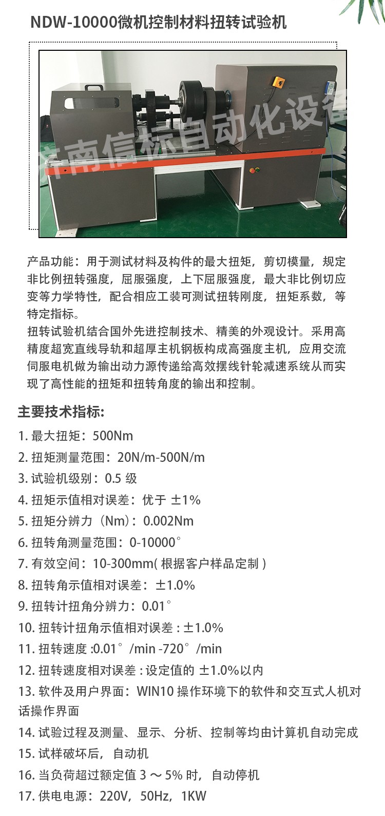 滿足及參考標(biāo)準(zhǔn): 1. GB/T2611-2007《試驗機(jī)通用技術(shù)要求》 2. GB/T10128-1998/2007 《金屬室溫扭轉(zhuǎn)試驗方法》 3. ISO7800-2003金屬材料單軸扭轉(zhuǎn)試驗方法 4. ASTM A 938-2004金屬線扭轉(zhuǎn)試驗方法 5. ASTM A938-07 鋼絲扭轉(zhuǎn)試驗的試驗方法 用于測試材料及構(gòu)件的最大扭矩,剪切模量,規(guī)定非比例扭轉(zhuǎn)強(qiáng)度,屈服強(qiáng)度,上下屈服強(qiáng)度,最大非比例切應(yīng)變等力學(xué)特性,配合相應(yīng)工裝可測試扭轉(zhuǎn)剛度,扭矩系數(shù),等特定指標(biāo)。 構(gòu)成高強(qiáng)度主機(jī),應(yīng)用交流伺服電機(jī)做為輸出動力源傳遞給高效擺線針輪減速系統(tǒng)從而實現(xiàn)了高性能的扭矩和扭轉(zhuǎn)角度的輸出和控制。 控制系統(tǒng)采用世界流行的高速PCIE標(biāo)準(zhǔn)并行總線設(shè)計,采用美國BB公司放大器,AD公司的高速模數(shù)轉(zhuǎn)換器及CPLD構(gòu)成數(shù)據(jù)采集系統(tǒng)及高精度扭矩傳感器構(gòu)成測量控制系統(tǒng)??刂破骺蓴U(kuò)展支持,LAN USB CAN等通訊方式。 試驗機(jī)專業(yè)軟件可實現(xiàn)自動求取最大扭矩、抗扭強(qiáng)度、上下屈服扭矩、規(guī)定非比例扭矩、切變模量等數(shù)據(jù)和指標(biāo),計算機(jī)控制系統(tǒng)對試驗過程的控制和數(shù)據(jù)處理符合相應(yīng)國際標(biāo)準(zhǔn)的要求,多種數(shù)據(jù)輸出方式,標(biāo)準(zhǔn)報表,Excel,word,開放式數(shù)據(jù)庫MDB及原始數(shù)據(jù)源txt形式本機(jī)無污染、噪音低,效率高,具有較寬的調(diào)速范圍。本機(jī)適用于各種金屬、非金屬及復(fù)合材料的力學(xué)性能指標(biāo)的測試,完全符合國家相關(guān)標(biāo)準(zhǔn)的要求。 結(jié)構(gòu)組成 加載單元:采用行星減速機(jī)作為減速單元配置伺服電機(jī)加載,減速機(jī)定制采用零背隙結(jié)構(gòu),此結(jié)構(gòu)可保證在扭轉(zhuǎn)過程中,無系統(tǒng)間隙,除滿足常規(guī)靜態(tài)測試外還可進(jìn)行低周疲勞,過零時(扭矩從正向最大減小到零在反向加載到最大的中間過程為過零,)可保證曲線的完整性和數(shù)據(jù)的準(zhǔn)確。