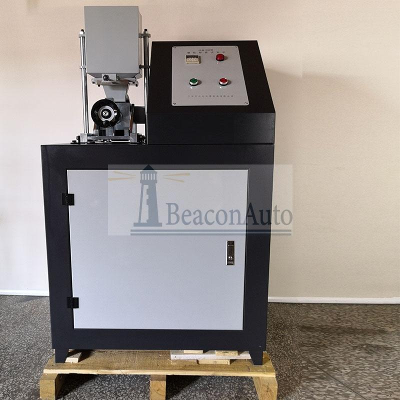 3.試驗(yàn)機(jī)的轉(zhuǎn)速及控制系統(tǒng) 試驗(yàn)機(jī)的轉(zhuǎn)速通過面板上變頻器旋鈕調(diào)整。一般推薦使用標(biāo)準(zhǔn)要求的(245轉(zhuǎn)/分)。 本機(jī)控制部分是由霍爾開關(guān)作為傳感器,其電源ZN-48智能數(shù)顯計數(shù)器供給,電壓約為12V左右。傳感器輸出的脈沖信號送至ZN-48智能數(shù)顯計數(shù)器。調(diào)整ZN-48計數(shù)器的預(yù)置“停車轉(zhuǎn)數(shù)”,當(dāng)試驗(yàn)機(jī)達(dá)到此預(yù)置轉(zhuǎn)數(shù)時, ZN-48計數(shù)器執(zhí)行繼電器動作,切斷試驗(yàn)機(jī)的控制電路電源,達(dá)到自動控制停機(jī)的目的。 四、SXM-225型濕砂橡膠輪式磨損試驗(yàn)機(jī)的安裝、調(diào)整及其使用前的準(zhǔn)備: 本機(jī)結(jié)構(gòu)緊湊,又有穩(wěn)定的底座,運(yùn)轉(zhuǎn)平穩(wěn),機(jī)體下面是可調(diào)減震墊腳,通過調(diào)整四個墊腳的高度,可以調(diào)整試驗(yàn)機(jī)水平度。為確保運(yùn)轉(zhuǎn)平穩(wěn),消除振動, 要求試驗(yàn)機(jī)水平度<0,05/1000毫米.同時能保證夾具橫桿加載時處于水平位置。 試驗(yàn)機(jī)就位后,先用煤油把機(jī)器各部件的防銹油脂及污垢擦洗干凈,切忌非潤滑油及其它雜質(zhì)進(jìn)入各軸承中。然后盤車,使轉(zhuǎn)動部份動作靈活即可。 接通電源(三相四線供電,黑色線為0線),ZN-48計數(shù)器得電,面板指示亮(即計數(shù)器數(shù)字亮)。 設(shè)置“停車轉(zhuǎn)數(shù)”,出廠預(yù)置1000轉(zhuǎn)。按照以下方法可重新設(shè)置停車轉(zhuǎn)數(shù):按下位選鍵( )幾秒,直到上邊第一位數(shù)碼管呈閃爍狀態(tài),按增加鍵(▲),設(shè)定此數(shù)值。再按位選鍵( ),上邊第二位數(shù)碼管呈閃爍狀態(tài),按增加鍵(▲),設(shè)定此數(shù)值。依此類推,設(shè)定第三、第四位數(shù)值。此時數(shù)碼管還在閃爍,8秒后,閃爍停止,設(shè)定值自動存入機(jī)內(nèi)。設(shè)置結(jié)束。ZN-48計數(shù)器最大設(shè)置的轉(zhuǎn)數(shù)為99999999。ZN-48計數(shù)器還可實(shí)現(xiàn)其他功能,請參考計數(shù)器說明書相關(guān)內(nèi)容。 將空氣開關(guān)撥到“開”的位置,主機(jī)控制電路得電。此時可調(diào)整變頻器到試驗(yàn)轉(zhuǎn)速,撥動開關(guān),主機(jī)電機(jī)運(yùn)轉(zhuǎn),開始試驗(yàn)。 當(dāng)試驗(yàn)轉(zhuǎn)數(shù)達(dá)到預(yù)置停車轉(zhuǎn)數(shù)時,ZN-48計數(shù)器自動控制停機(jī)。繼續(xù)試驗(yàn),請先按下計數(shù)器復(fù)位鍵( ),才能重新啟動試驗(yàn)機(jī)。 結(jié)束試驗(yàn)后,請切斷電源。再清理試驗(yàn)機(jī)。 五、SXM-225型濕砂橡膠輪式磨損試驗(yàn)機(jī)試驗(yàn)機(jī)試驗(yàn)操作方法及注意事項: 1.試驗(yàn)前準(zhǔn)備: (1)修理橡膠輪 用320#金相水砂紙剪成35X67(毫米)大小,包貼在標(biāo)準(zhǔn)試樣上,先檢查一下橡膠輪緣上是否貼有砂子和臟物,用清水沖洗橡膠輪,然后把包有水砂紙的試樣裝在夾具上并安裝在夾具橫桿臂上,在砂漿槽箱里加0.5千克的水,加上1千克的砝碼,放下夾具橫桿,使橡膠 輪與砂紙緊貼,開動機(jī)器,以240轉(zhuǎn)/分轉(zhuǎn)速轉(zhuǎn)動,計數(shù)器予置在100轉(zhuǎn),轉(zhuǎn)100轉(zhuǎn)后機(jī)器自動停止,橡膠輪修整完畢。然后卸載,取出砂紙和夾具,用水將泥漿槽沖洗干凈。經(jīng)修整過的橡膠輪其直徑減小約0.1毫米。 試驗(yàn)時橡膠輪累積運(yùn)行10000轉(zhuǎn)以后應(yīng)將橡膠輪重新修整。經(jīng)驗(yàn)表明,超過10000轉(zhuǎn)以后對試驗(yàn)結(jié)果的重現(xiàn)性將產(chǎn)生不利的影響。 值得注意的是,橡膠輪從制造廠出廠后,必須經(jīng)過在磨床上修磨到一定的尺寸,每一個橡膠輪的直徑和寬度應(yīng)該仔細(xì)地加以測定,橡膠輪緣必須沒有缺陷而且硬度均勻。 (2)橡膠輪硬度測定: 橡膠輪是由三種邵爾硬度橡膠輪緣制成,橡膠輪緣的名義邵爾硬度50、60、70,實(shí)際值需要用邵爾硬度計測量。硬度計固定在一個垂直地立在砂漿罩上面導(dǎo)柱的底部。橡膠輪修正完畢后,將硬度計壓頭 (撞針)輕輕地接觸膠輪,加載后約5秒鐘讀取硬度值。橡膠輪緣硬度應(yīng)該在輪緣約八等分的位置上進(jìn)行測定,取八個讀數(shù)的平均值為實(shí)測硬度. 2.試驗(yàn)操作程序 (1)預(yù)磨 每次試驗(yàn)開始之前,泥漿槽必須徹底刷洗以消除上次試驗(yàn)用的砂漿的任何遺留物,每個試樣要去磁,清除靜電,在酒精或丙酮中浸洗,然后用吹風(fēng)機(jī)吹干,在萬分之一精度的天平上稱重,測得試樣重量,而后安裝在試樣夾具上。 然后在砂漿槽中倒入940~1000ml去離子水和1.5㎏石英砂(50~70目)或用戶選定的其他磨料,蓋好有機(jī)玻璃罩,開動機(jī)器先攬拌50轉(zhuǎn)停機(jī),而后加上所需要砝碼,將計數(shù)器設(shè)定在1000(約560米)轉(zhuǎn)上,輕輕放下載荷,將試樣與橡膠輪輕輕地接合,開機(jī)預(yù)磨,以產(chǎn)生一個予制磨痕,為消除試樣表面質(zhì)量和受力不均帶來的試驗(yàn)誤差,經(jīng)過預(yù)磨試樣表面產(chǎn)生一個新鮮磨痕,預(yù)磨一直繼續(xù)到橡膠輪轉(zhuǎn)到1000轉(zhuǎn)自動停車為止。然后抬起夾具橫桿使試樣表面脫離橡膠輪,卸下夾具取出試樣,去除砂漿沖洗砂漿槽,清洗試樣并稱重。做為“原始重量”。 (2)正式試驗(yàn) 設(shè)置計數(shù)器在2000(約1120米)轉(zhuǎn),構(gòu)成正式磨損